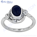 This exquisite ring features a captivating blue sapphire gemstone set in lustrous 925 sterling silver. The ring is meticulously crafted for durability and hypoallergenic wear, making it ideal for sensitive skin. The gemstone is securely set to ensure longevity and everyday wear. Its elegant design makes it a versatile piece suitable for various occasions. This ring is a perfect gift. Choose this silver gemstone ring for a touch of timeless elegance.