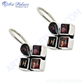 These elegant earrings feature a 925 sterling silver setting, ensuring lasting shine and durability. Each earring showcases natural garnet gemstones, carefully cut and set in a square design. The earrings are crafted with a secure hook closure, making them ideal for comfortable, daily wear. The earrings are hypoallergenic. These earrings are designed for those seeking a touch of sophistication, making them perfect for gifting. These earrings are the perfect choice for a woman seeking garnet earrings, daily wear earrings, and silver jewelry.