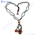 Black Beaded Necklace with Red Gemstones | Women's Fashion Jewelry