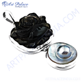 Black Onyx Rose Pendant Necklace | Sterling Silver Locket