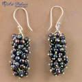 Black Pearl Cluster Earrings | 925 Sterling Silver Dangle
