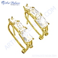 gold plating ear climbers with sparkling cubic zirconia stones, perfect for adding elegance to any outfit.