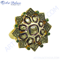 This exquisite cocktail ring features a captivating design, perfect for adding a touch of luxury. Crafted in gold plating, the ring showcases a stunning arrangement of diamonds and vibrant emeralds. The intricate detailing highlights the quality craftsmanship. Ideal for special occasions, this ring is a statement piece. It is a perfect gift. The ring is designed to make you feel beautiful, it's suitable for daily wear. This ring is a timeless addition to any jewelry collection. Its beautiful design, and high-quality materials, make it an ideal gift.