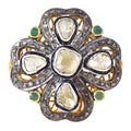 gold plating Diamond Ring with Emerald Accents | Floral Ring