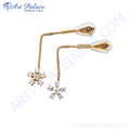 gold plating drop earrings featuring a diamond snowflake design, perfect for a sophisticated look.