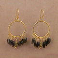 gold plating Hoop Dangle Earrings with Grey Gemstone Beads | Women's Jewelry
