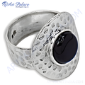 Hammered Silver Onyx Ring for Women | Statement Jewelry
