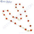 Red Carnelian & Pearl Beaded Necklace for Women | Gemstone Jewelry
