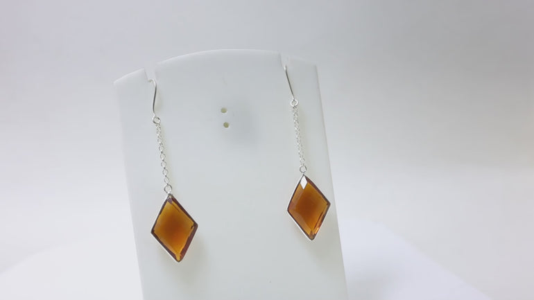 Silver Rhombus Drop Earrings with Amber Gemstone | Women's Jewelry