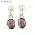 925 Silver Oval Amethyst Drop Earrings for Women | Gift