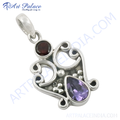 925 Silver Amethyst & Garnet Pendant | Women's Gemstone Jewelry