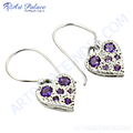 925 Silver Amethyst Heart Earrings for Women | Dangle Earrings