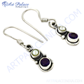 925 sterling silver drop earrings with pearl and amethyst gemstones, elegant jewelry