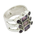 This exquisite ring is crafted from premium 925 sterling silver, featuring a stunning arrangement of amethyst gemstones. The ring showcases a unique design and is ideal for women seeking a statement piece. The ring's design incorporates amethyst, known for its captivating purple hue. This ring is a perfect fit for any occasion. The amethyst ring is durable and hypoallergenic, making it suitable for sensitive skin. This ring is ideal for daily wear or gifting.