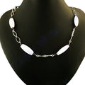 This elegant necklace features a delicate design with white stone beads interspersed with silver chain links. Crafted from high-quality materials, the necklace is ideal for adding a touch of sophistication to any outfit. The necklace showcases a beautiful combination of white stones and silver chain. This necklace offers a secure fit and is suitable for sensitive skin. This necklace is perfect for daily wear or as a thoughtful gift. The necklace's versatile design makes it an ideal accessory for various occasions, enhancing your personal style. It is a stunning addition to any jewelry collection.