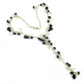 Silver Beaded Y Necklace with Black & Clear Gemstones for Women