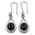 925 Silver Black Gemstone Teardrop Earrings for Women