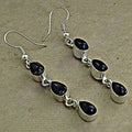 These elegant earrings feature genuine black onyx gemstones set in polished 925 sterling silver. The earrings are designed as a drop style, creating a sophisticated look. Each earring showcases three pear-shaped onyx stones, secured in secure settings. The earrings are nickel-free and hypoallergenic. Perfect for adding a touch of classic elegance. Ideal for daily wear or gifting. The earrings feature a secure hook closure for comfortable and safe wearing.