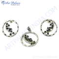 925 Silver Black Sapphire Pendant Earrings Set | Women's Jewelry