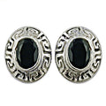 These exquisite stud earrings are crafted from high-quality 925 sterling silver, ensuring durability and a brilliant shine. Each earring features a captivating black stone set within an elegant, intricate design. The earrings are designed for a comfortable and secure fit, ideal for everyday wear. The earrings are hypoallergenic and tarnish-resistant, making them suitable for sensitive skin. These stud earrings are a beautiful addition to any jewelry collection and are perfect for gifting.