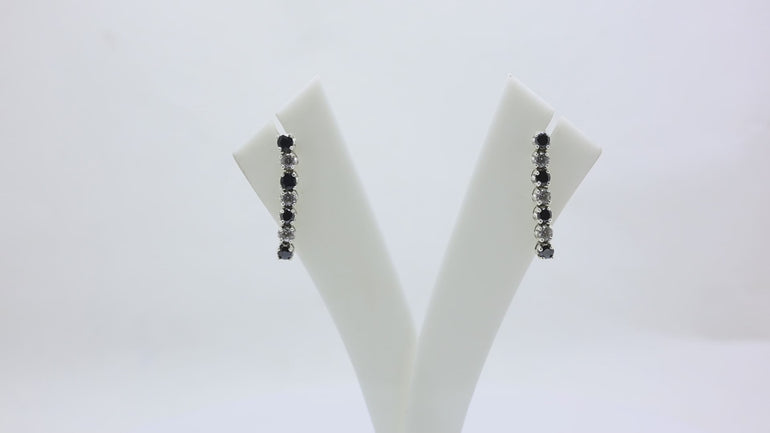 These elegant drop earrings are crafted from high-quality 925 sterling silver, ensuring durability and a brilliant shine. Each earring features a series of sparkling black and white stones, meticulously set to create a stunning visual impact. The earrings are designed with secure post backings for comfortable and reliable wear. The silver is hypoallergenic and resists tarnishing, making them ideal for sensitive skin. These earrings are perfect for adding a touch of sophistication to any outfit. They are ideal for daily wear or gifting.