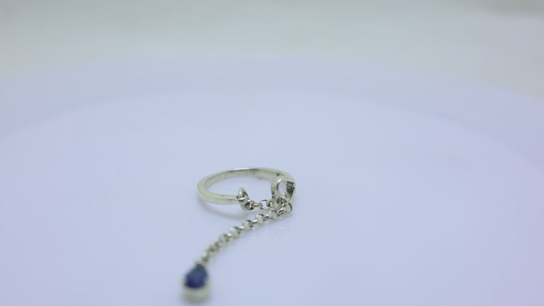 925 Silver Blue Gemstone Dangle Ring for Women | Gift Idea