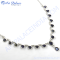 925 Silver Blue Gemstone Necklace | Teardrop Design for Women