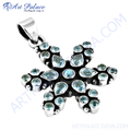 Sterling silver flower pendant with vibrant blue topaz gemstones, perfect for women.