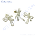 Silver bow stud earrings with sparkling cubic zirconia stones, perfect for women.
