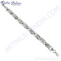 This elegant silver bracelet is crafted from high-quality sterling silver, offering both durability and a timeless aesthetic. The bracelet features a unique, handcrafted design, showcasing individual rectangular links connected by secure clasps. It's a perfect blend of style and substance. The secure clasp ensures a comfortable and secure fit for daily wear. This bracelet is designed to withstand the test of time. Ideal for men seeking a sophisticated accessory, this bracelet makes an excellent gift for any occasion. This is a very good and amazing **silver bracelet**, which makes you stand out in a crowd. It is ideal for **daily wear** and gifting, and it offers great **silver jewelry** option. This beautiful **men's bracelet** showcases the beauty of **sterling silver**.