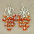 Silver Carnelian Bead Drop Earrings for Women | Gemstone Jewelry