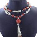 Silver Carnelian Tassel Necklace for Women | Gemstone Jewelry