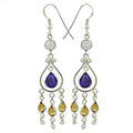These elegant dangle earrings are crafted from high-quality 925 sterling silver. Featuring a captivating teardrop design, each earring showcases a vibrant purple gemstone and is accented with multiple dangling citrine gemstones, known for their warm, sunny hues. The earrings are designed for comfortable wear, with secure hook closures. These earrings are a timeless addition to any jewelry collection. They are ideal for daily wear or gifting, offering a touch of sophistication and sparkle.