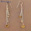 925 Silver Citrine Dangle Earrings for Women | Gemstone Jewelry