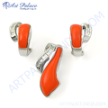 Silver Coral Gemstone Earrings & Pendant Set | Women's Jewelry