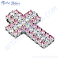 Silver Cross Pendant with Pink & White Gemstones | Gift for Her