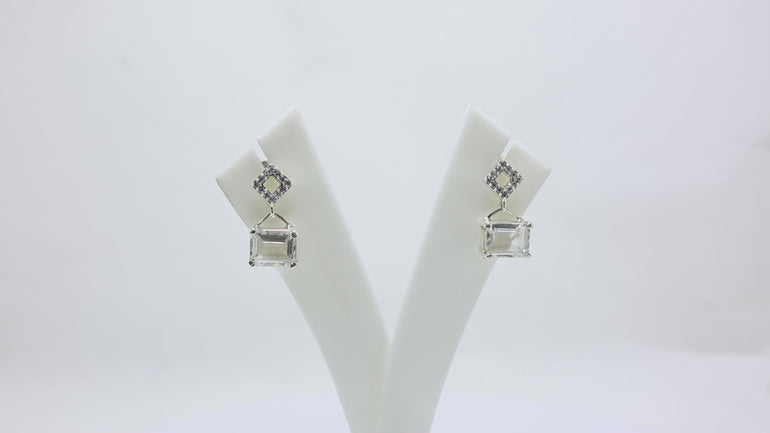 These elegant dangle earrings are crafted from high-quality 925 sterling silver, ensuring durability and a brilliant shine. Each earring features sparkling cubic zirconia stones, cut to reflect light beautifully. The earrings' design incorporates a square-cut stone suspended from a diamond-shaped accent, creating a graceful dangle. Ideal for sensitive ears, the earrings are nickel-free and hypoallergenic. These stylish earrings are perfect for adding a touch of sophistication to any outfit, making them ideal for daily wear or gifting. The classic design is suitable for various occasions.