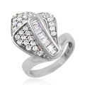 This elegant ring is crafted from high-quality 925 sterling silver and features sparkling cubic zirconia stones. The ring showcases a unique design, blending round and baguette-cut CZs for maximum brilliance. Its polished finish enhances the silver's luster, making it a perfect accessory for any occasion. This ring offers a comfortable fit, ideal for daily wear or gifting. The durable construction ensures longevity, while the hypoallergenic properties make it suitable for sensitive skin. Experience the beauty and sophistication of this exquisite piece and add a touch of sparkle to your style.