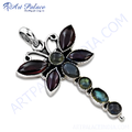 925 Sterling Silver Dragonfly Pendant | Garnet & Labradorite
