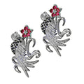 Silver Floral Bird Earrings with Red Gemstones | Women's Jewelry