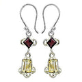 925 Silver Garnet & Citrine Dangle Earrings for Women