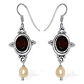 925 Silver Garnet & Pearl Drop Earrings for Women | Gift