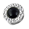 Silver Hammered Ring with Black Gemstone | Women's Ring