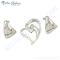 Silver Heart Pendant Earrings Set | Women's Diamond Jewelry