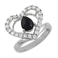 Silver Heart Ring with Black Gemstone | Women's Ring