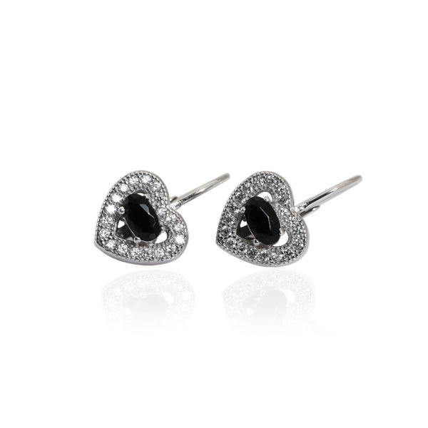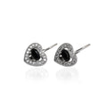 925 Silver Heart Stud Earrings with Black Gemstones | Women's Jewelry