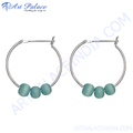 Silver Hoop Earrings with Blue Beads for Women | Fashion Jewelry