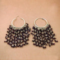 Silver Hoop Earrings with Garnet Beads for Women | Daily Wear