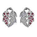 Silver Leaf Stud Earrings with Ruby & Diamond Accents