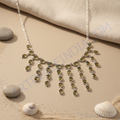 This exquisite necklace features a delicate design crafted from high-quality sterling silver. Adorned with olive green gemstones, the necklace offers a captivating sparkle. The necklace is ideal for women and is suitable for various occasions. The necklace is meticulously crafted, ensuring durability and a comfortable fit. This piece is perfect for those seeking a blend of elegance and subtle sophistication. The necklace is designed for women who appreciate fine jewelry and is an ideal gift for yourself or a loved one. The silver necklace offers a timeless appeal.